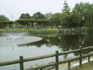 池の北側に子ども用のアスレチックジム、砂場が設置されており、また池の南側には噴水やバラ園も併設されており、春からの時期、いつも静かな池の周囲がとても華やかになります。駐車場も15台程ございますので、小さいお子様がみえるご家族連れでも楽しめる公園となっております。